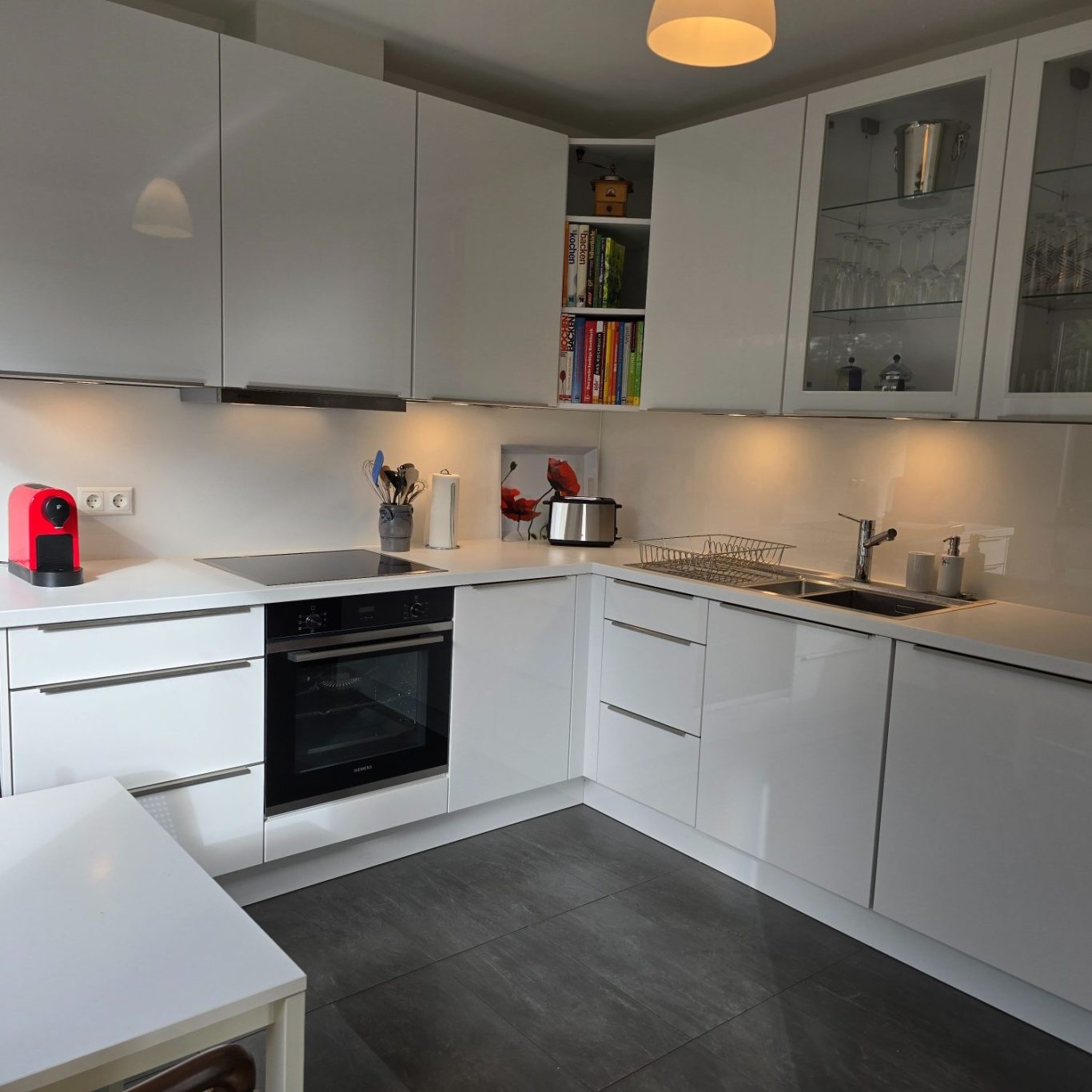 Eine moderne Küche steht bereit, um kulinarische Köstlichkeiten zuzubereiten. Die voll ausgestattete Küche bietet ideale Voraussetzungen für alle, die im Urlaub gerne selbst kochen und dabei Wert auf Qualität und Genuss legen. Direkter Zugang von der Küche zur großzügigen Terrasse.